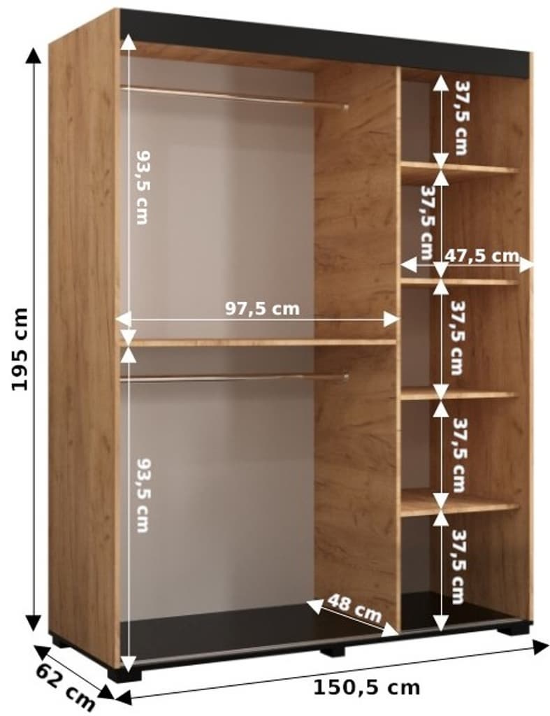 - Dimensions: W150cm x H195cm x D62cm